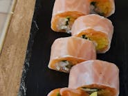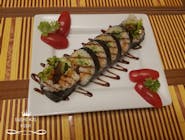 Futomaki z Tunczykiem na ostro w tempurze 6 szt.Tuńczyk na ostro w tempurze ,sałata , serek, awokado, rzepa.